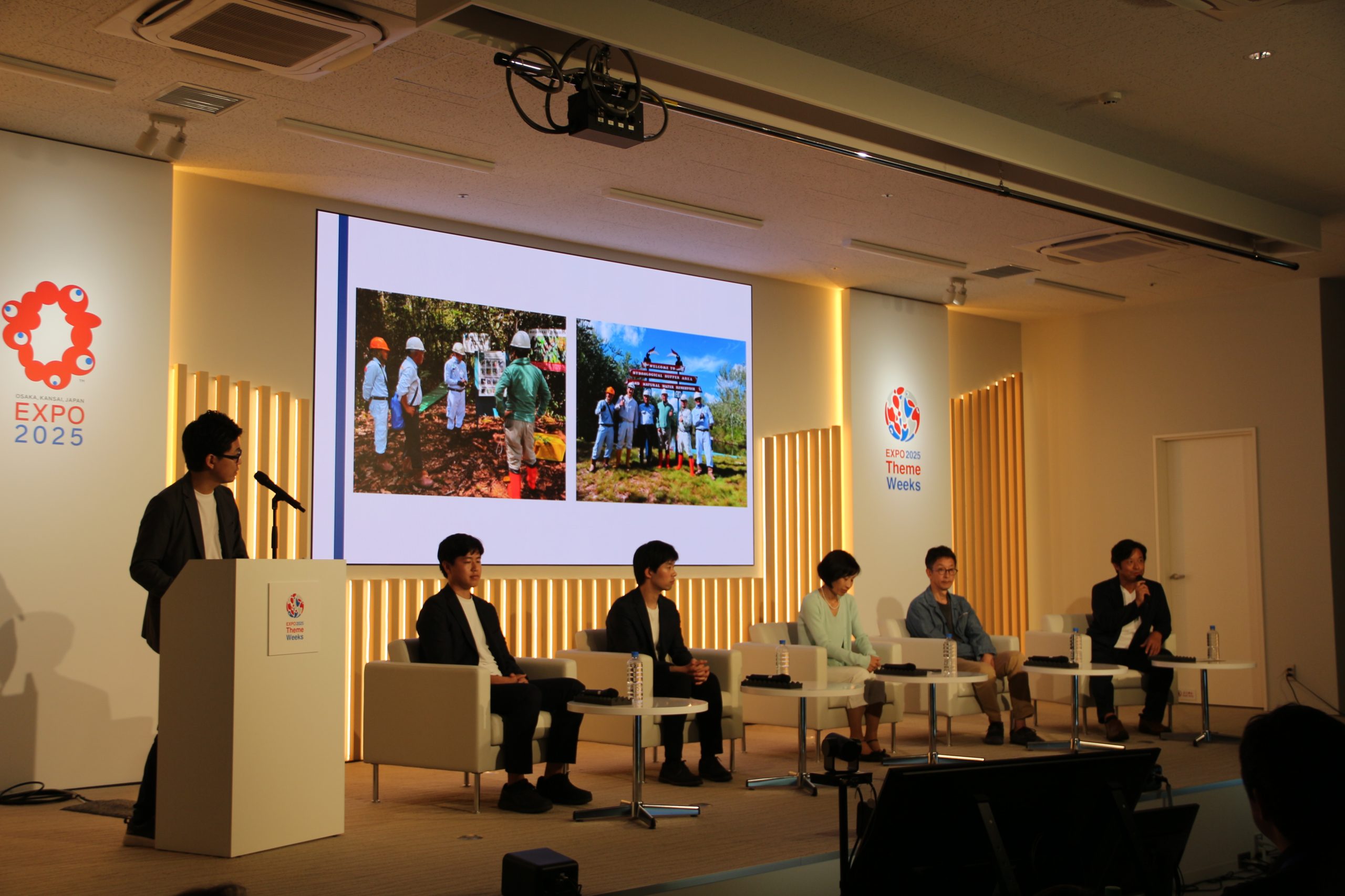 水と森を巡る世界的な課題と、それが私たちの生活に迫ってきている現状が共有されました。モデレーターの出本さんは「世界でこういうことが起きているんだ、というイメージは持っていただけたと思います。その上で、具体的にどんな取り組みが進んでいるのか、今後何が必要なのかといった話ができればと思います」と進行しました。